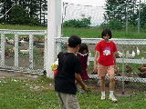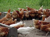 ちなみに、ここのにわとり牧場は、放し飼いの実験農場ということです。クローバーの農場を元気のいいにわとりが走り・・・回ってはいなくて、市きりにえさを食べておりました。昼時だったから、にわとりも食事タイムだったんでしょうか?それとも、ひたすら食べて食べて、太って人間に食べられる運命なんでしょうか?