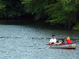 沼までくると、遊覧モーターボートの呼び込みの兄ちゃんが真っ先に目に飛び込んできた。「はい、次の便、あと3人だよ、あと3人」。まるで、夜の駅前、白タク状態でした。