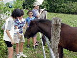 しばらくは、遠くから我々観光客を見ていたポニーさんたちも、危害を加えるような人たちではないとわかったのか、草をせびるように柵の近くまできてくれて、子供たちはくさをあげてよろこんでいました。
