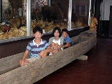 しょうがないから、子供に丸木舟ののってもらって記念写真。アイヌの文化をみにきたんだか。熊の剥製をみにきたんだか、よくわからない資料館でした。