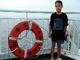 日曜日のサザエさん状態になっているので、ちょっと気晴らしにと、甲板に出て記念写真。