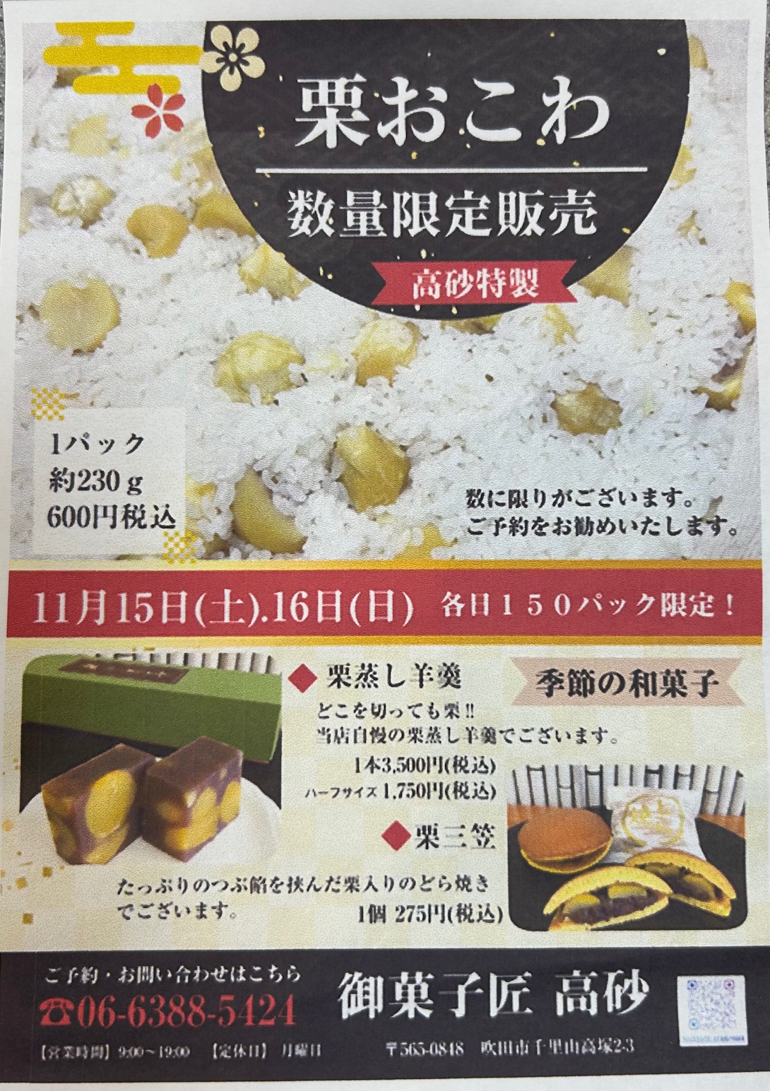 高砂は、厳選された材料、ひとつひとつ丁寧に作られた和菓子を取り揃えております。